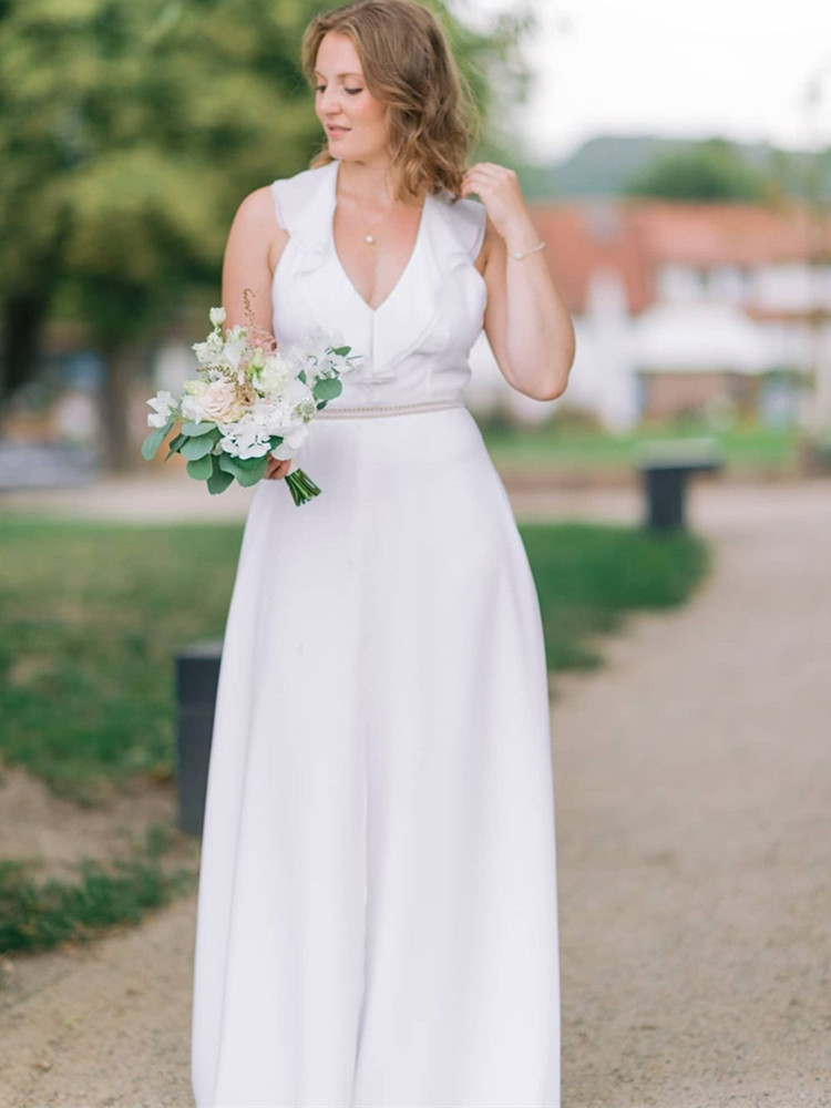 Large Sleeveless V-Neck Wedding Dress High Quality Satin Backless Elegant Hot Sell A-Line Slit Wedding Gowns