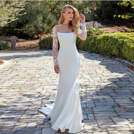 Long Sleeves Muslim Arabic Wedding Dresses Boho Elegant Sheath Summer Plus Size Satin Bridal Gowns
