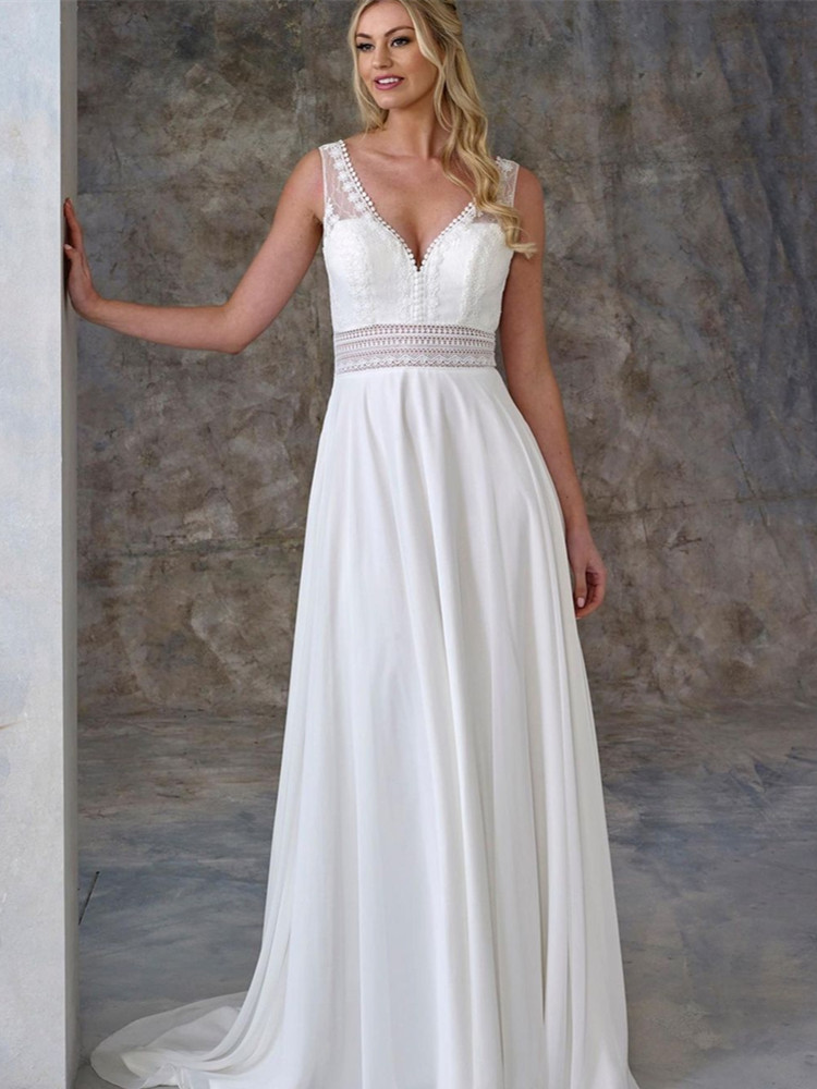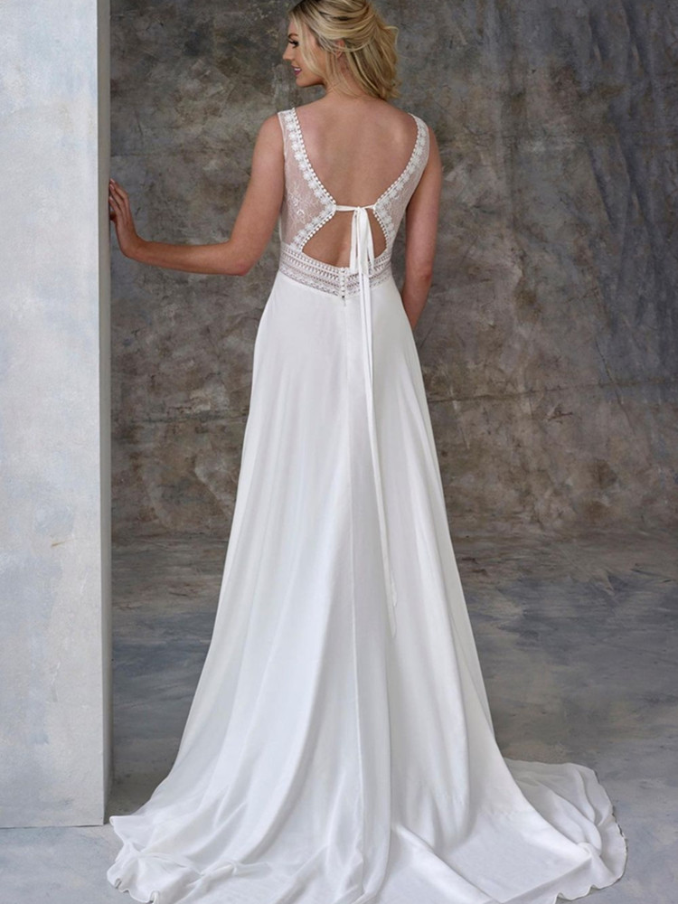 Luxury A-Line Sleeveless Wedding Dress New Lace Applique Spaghetti Strap Backless Sexy V-Neck Wedding Gowns