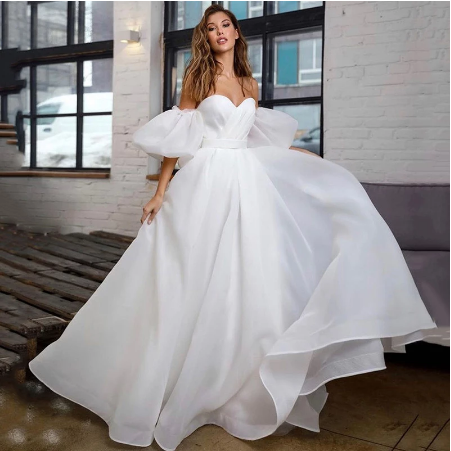 Princess White Wedding Dress Puff Short Sleeve Plus Size Bridal Dresses Lace up Back A Line Cheap Wedding Gowns