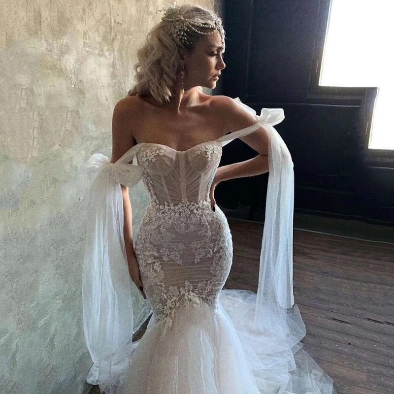 Backless Wedding Dresses Mermaid Off The Shoulder Tulle Lace Boho Dubai Arabic Wedding Gown Bridal Dress