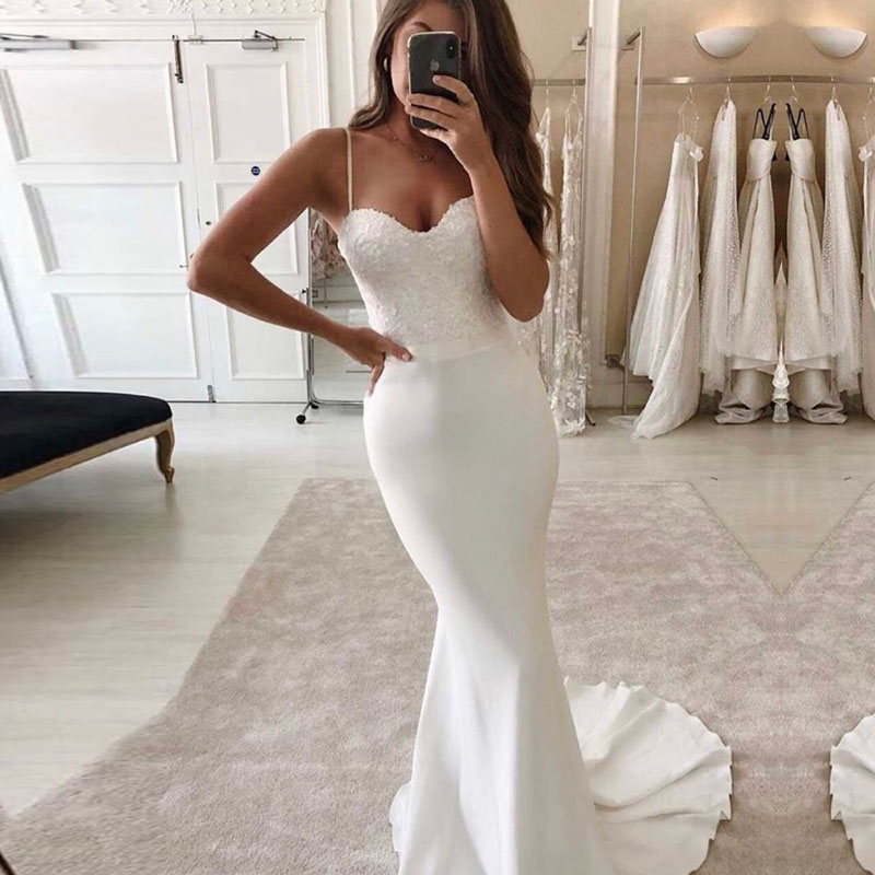 Mermaid Wedding Dresses Spaghetti Strap Appliques Soft Satin Boho Wedding Gown White Ivory Simple Bride Dress