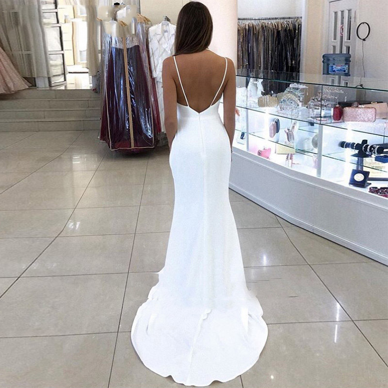 White Chiffon Backless Mermaid Boho Wedding Dresses V-neck Spaghetti Straps Side Slit Beach Bridal Gowns