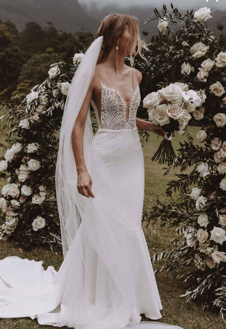Modern Bohemia Mermaid Wedding Dress Sexy Lace Open Back Illusory Boho V Neck Chic Bridal Gowns
