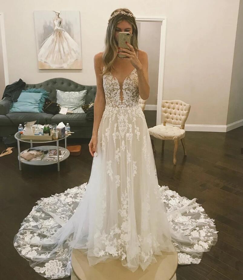Bohemian Wedding Dresses Lace Appliques Bridal Gowns Boho Sleeveless Court Train Spaghetti Strap Robe De Vintage Marriage Dress