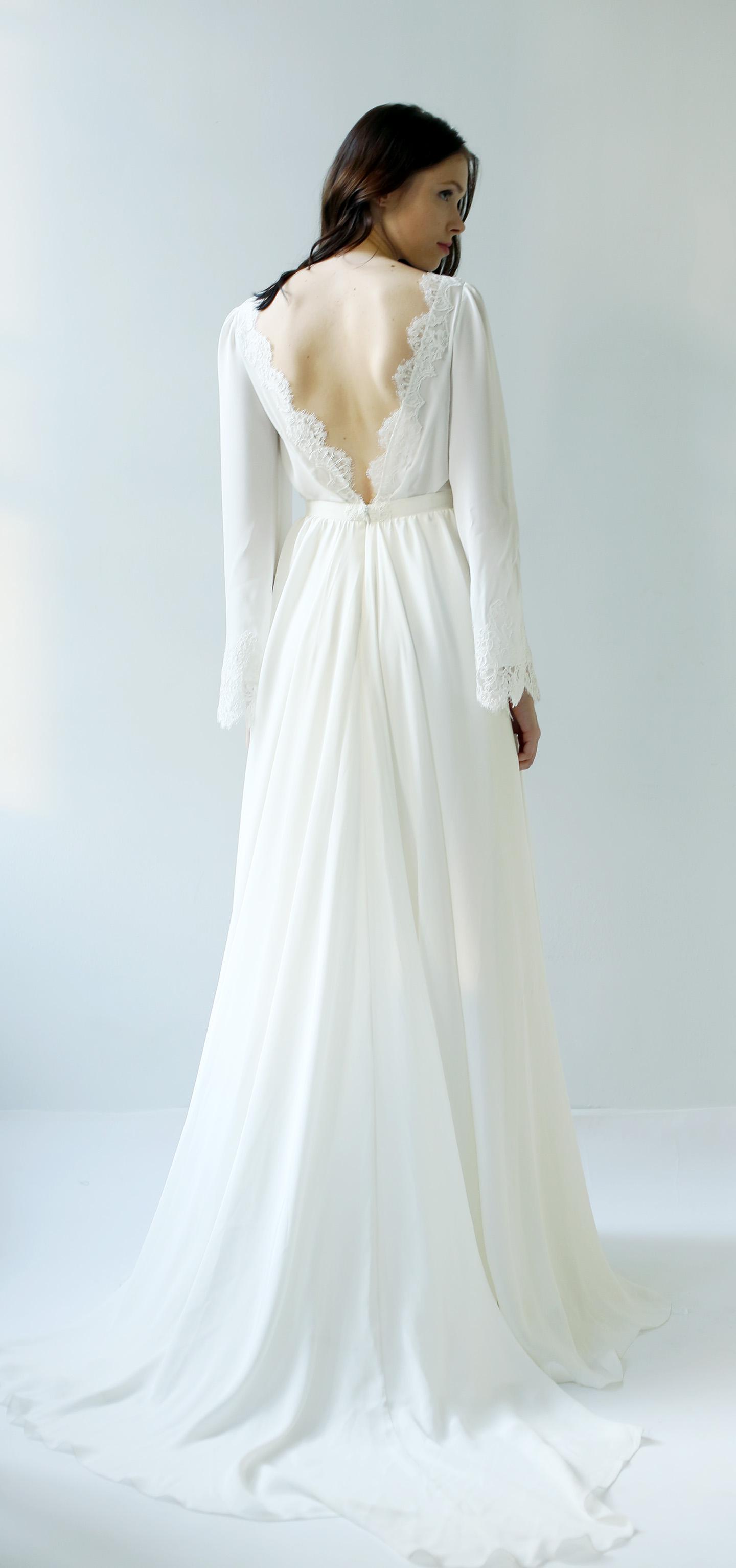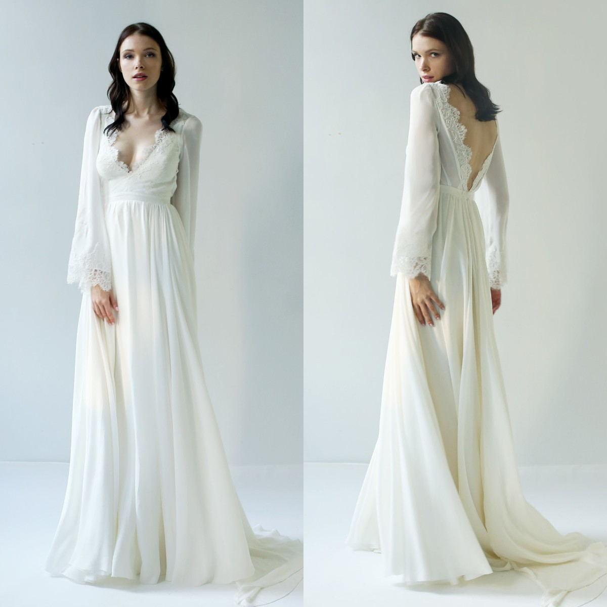 New Bohemian Wedding Dress Deep V Neck A Line Lace Chiffon Boho Robe De Mariée Long Sleeves