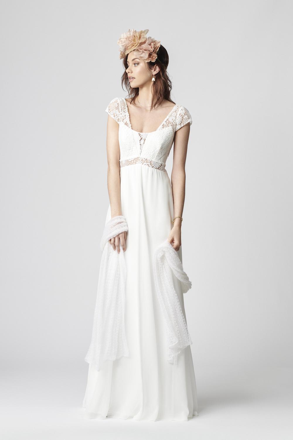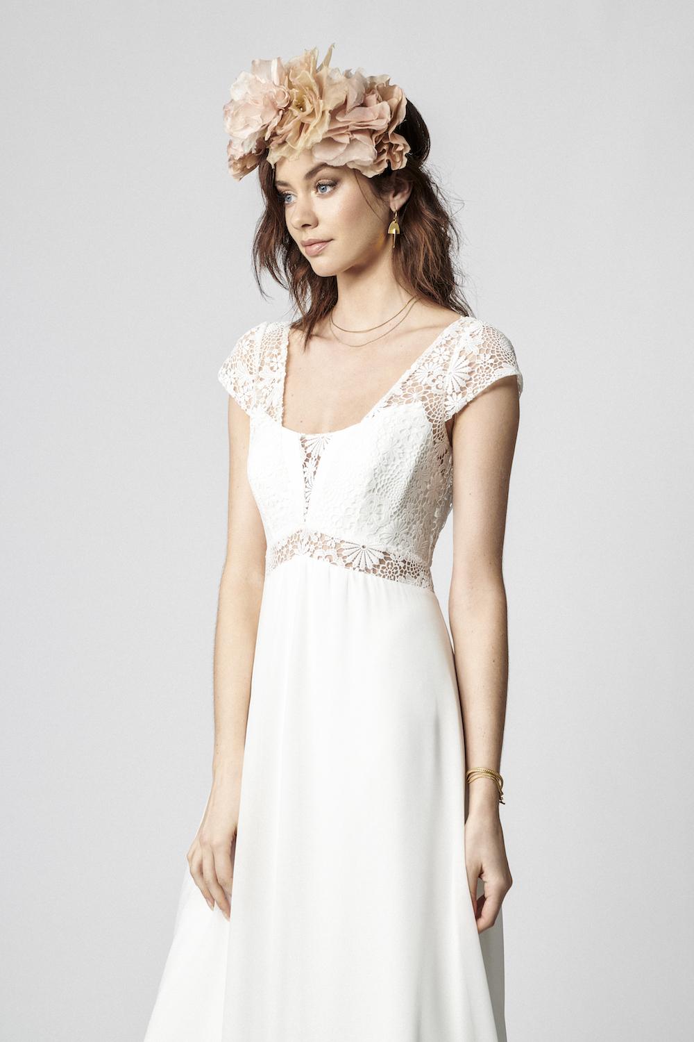 New Bohemian Wedding Dresses V Neck Chiffon Skirt A Line Cap Sleeve Lace Boho Wedding Gowns Custom Made Beach Bridal Dress