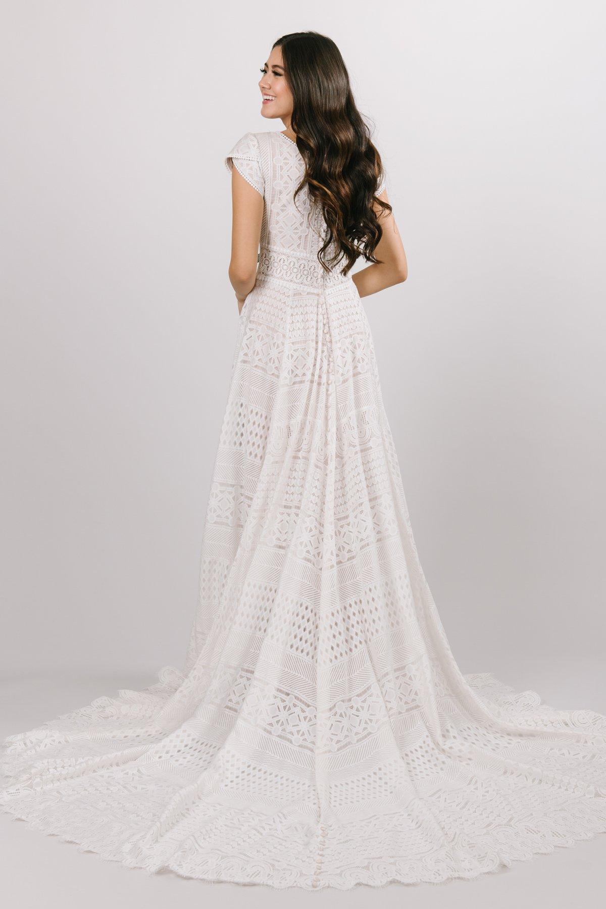 Vintage Lace Modest Wedding Dresses Cap Sleeves V Neck Boho Custom made Bridal Gowns
