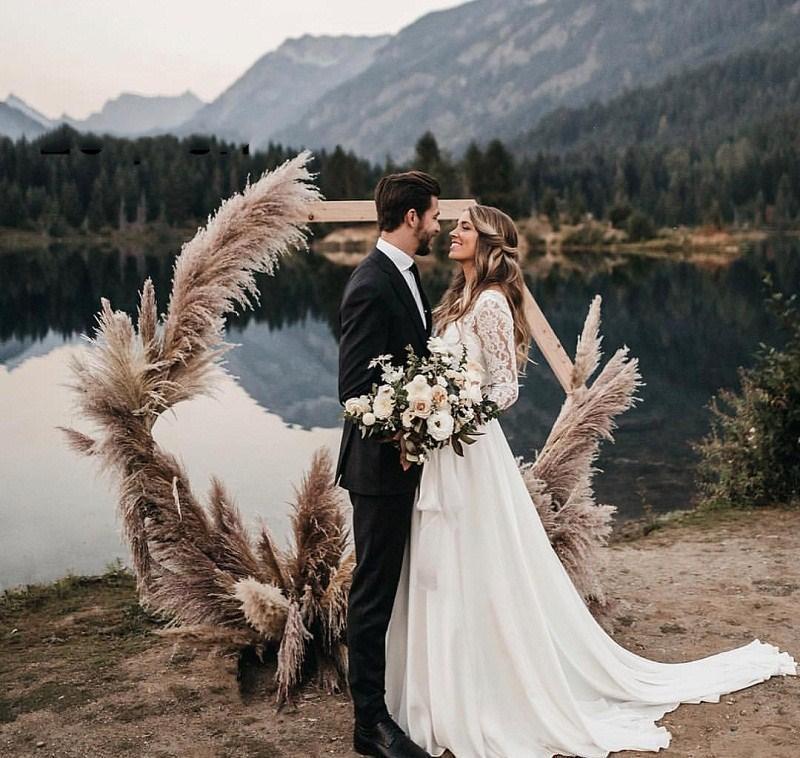 Vintage Plus Size Long Sleeves Lace Boho Wedding Dresses Lace Applique V Neck Beach Country Style Bohemian Wedding Dress Bridal Gowns