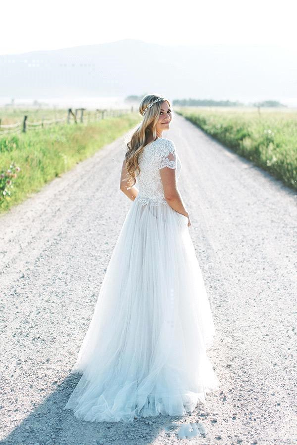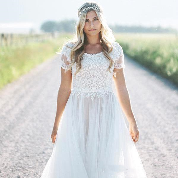 Lace Bohemian Beach Wedding Dress Bridal Gowns Short Sleveless Tulle A Line Plus Size Country Boho Wedding Dresses
