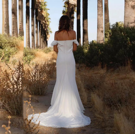 Off The Shoulder Boho Wedding Dress Mermaid Sweep Train Off The Shoulder Bridal Gowns
