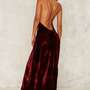 Burgundy Spaghetti straps Split Prom Dress, Backless Velvet Prom Dresses