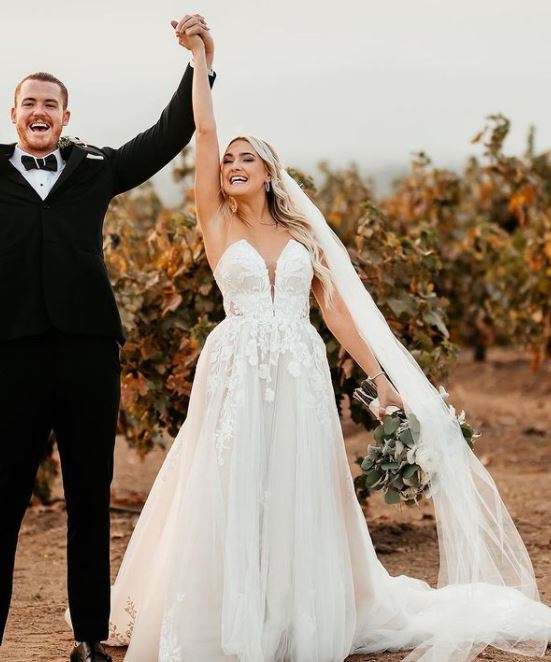 Bohemian wedding dress, sleeveless V-neck lace decal chiffon strapless wedding dress