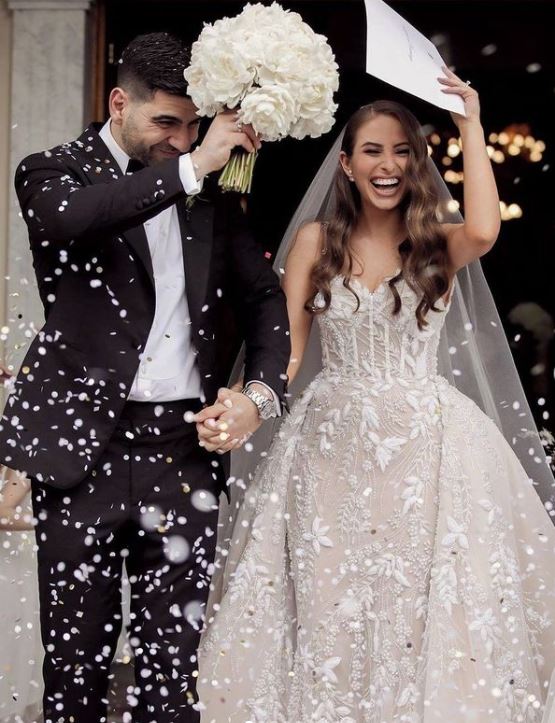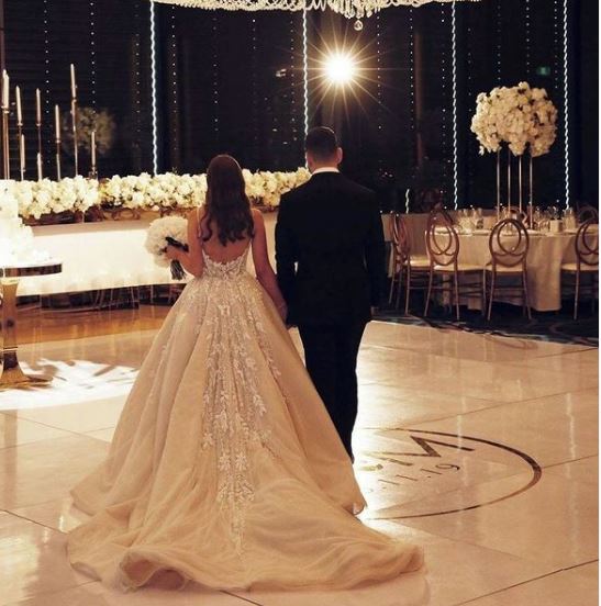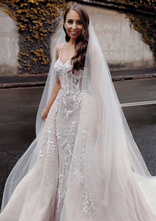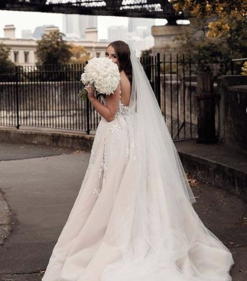 Bohemian wedding dress, luxury V-neck sleeveless lace applique wedding dress