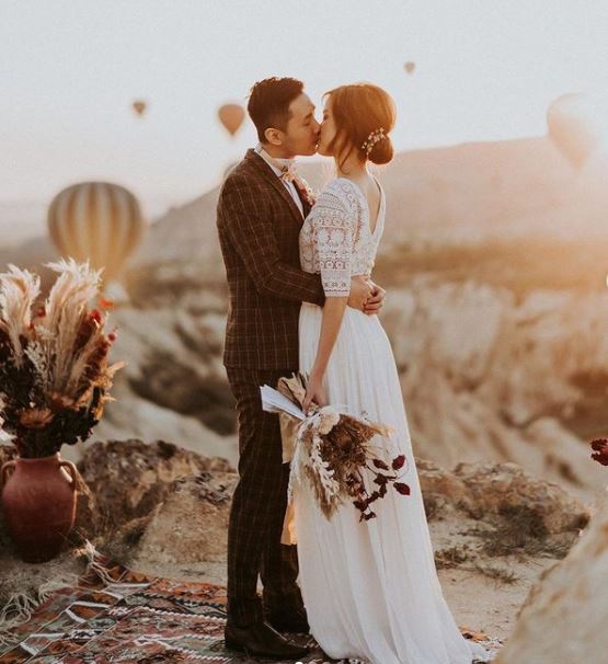 Bohemian wedding dress, simple round neck 2 lace chiffon wedding dress