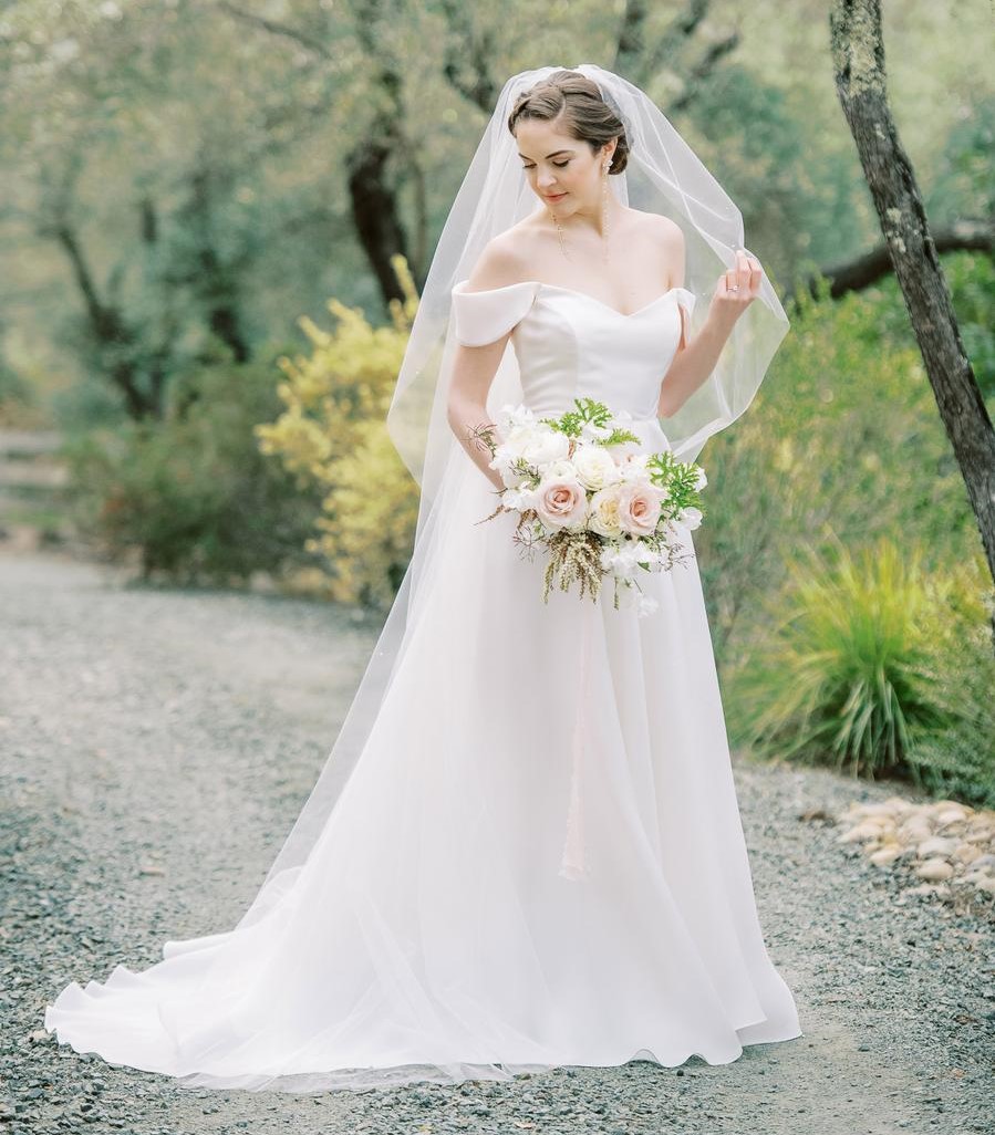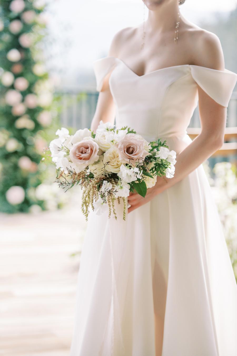 Bohemian wedding dress, simple off-the-shoulder satin wedding dress