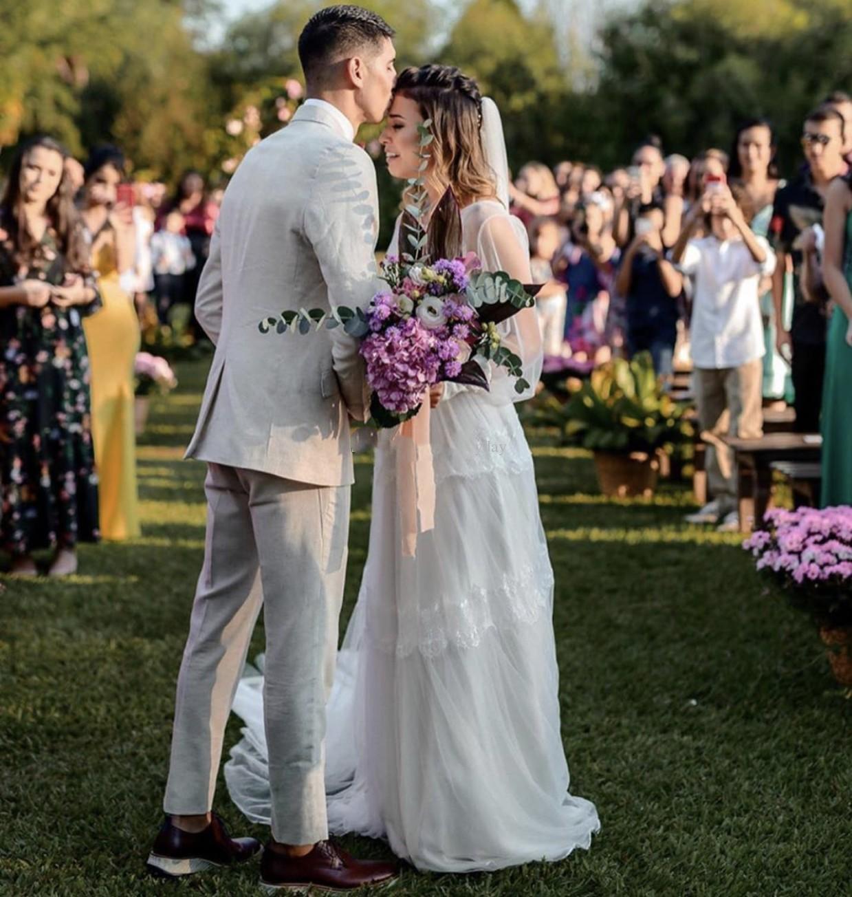 Boho Garden Wedding Dresses Bridal Gowns See Through Long Puffy Sleeves Sheer Neck Layered Lace A Line Bohemian Vestidos