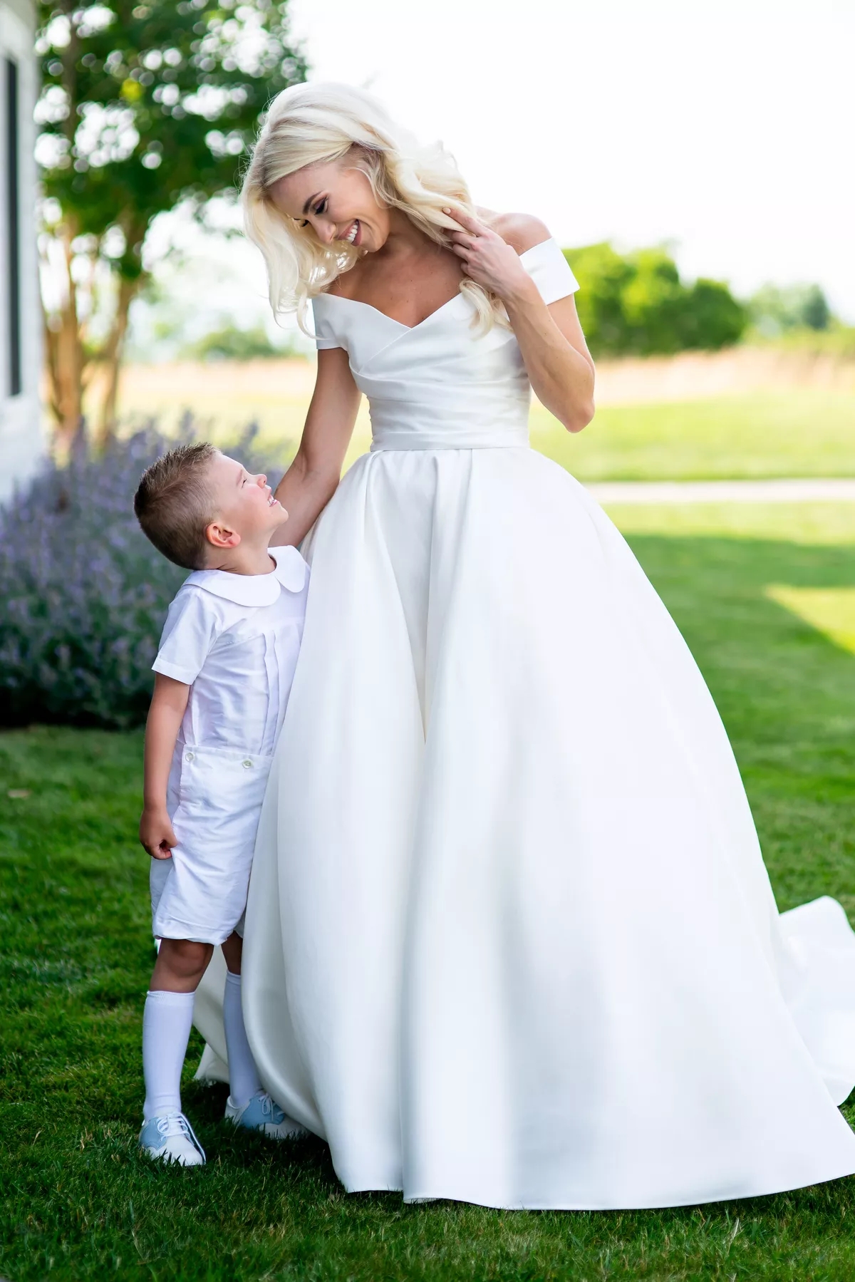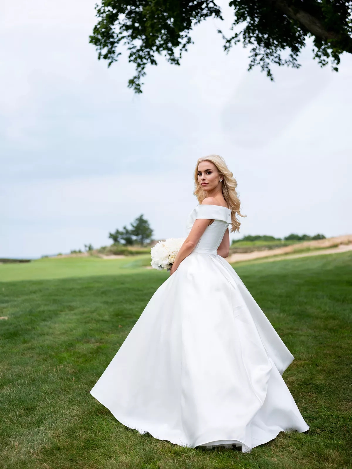Charming A-Line Off the Shoulder White Satin Wedding Dress