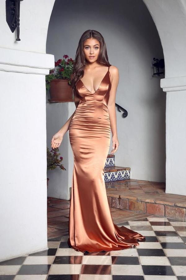 Open Back Prom Dress with Deep V Neckline Evening Party Dress