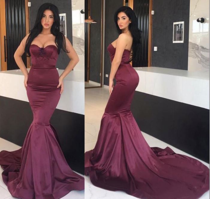 African Burgundy Mermaid Evening Dress Beaded Crtystal Sweetheart Glamorous Formal Evening Party Gowns