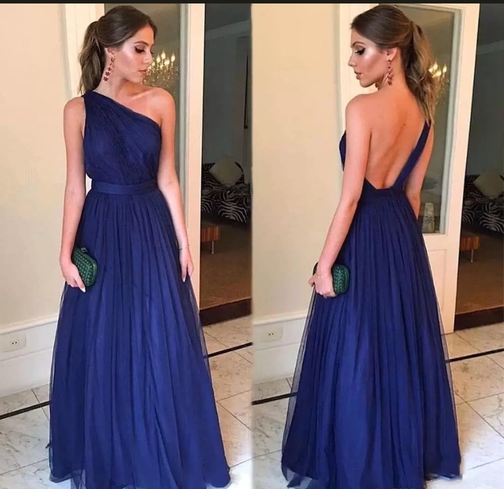 Cheap Navy Blue One Shoulder A-line Prom Dresses Vintage Tulle Open Back Evening Gown Long Formal Party Bridesmaid Dresses
