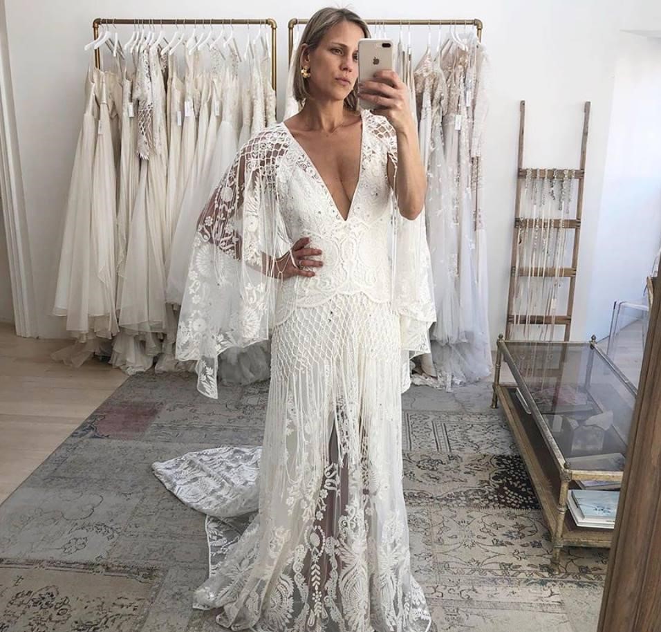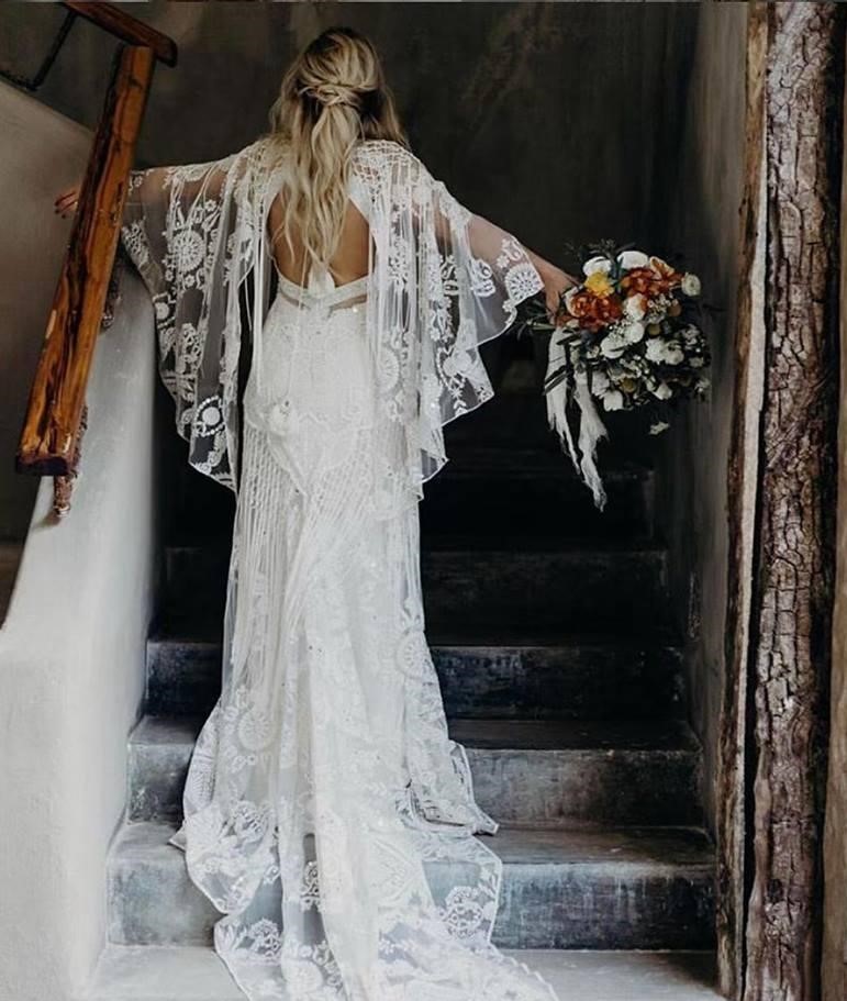 Bohemian Country V Neck Wedding Dresses Long Sleeve Lace Appliqued Boho Wedding Gowns Sweep Train Beach Garden Luxury Bridal Dress