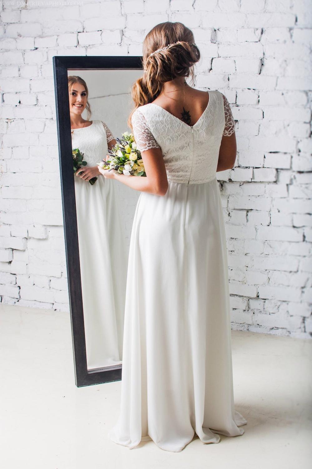 Elegant Chiffon A Line Wedding Dresses Boho Beach Short Sleeve Jewel Neck Lace Bridal Gowns
