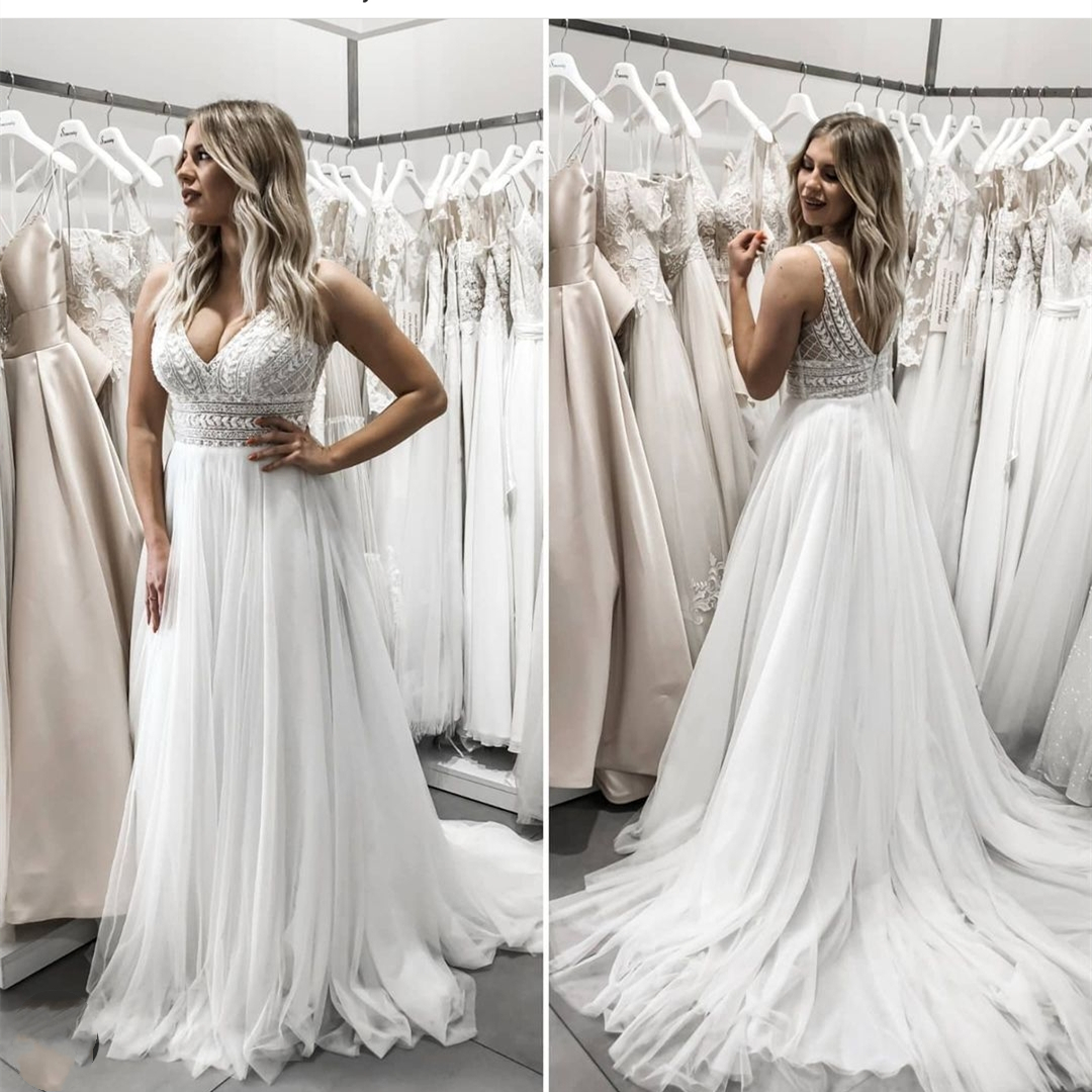 Elegant Wedding Dress V-Neck Boho A-Line Backless Sweep Train Charming For Women Wedding Dress