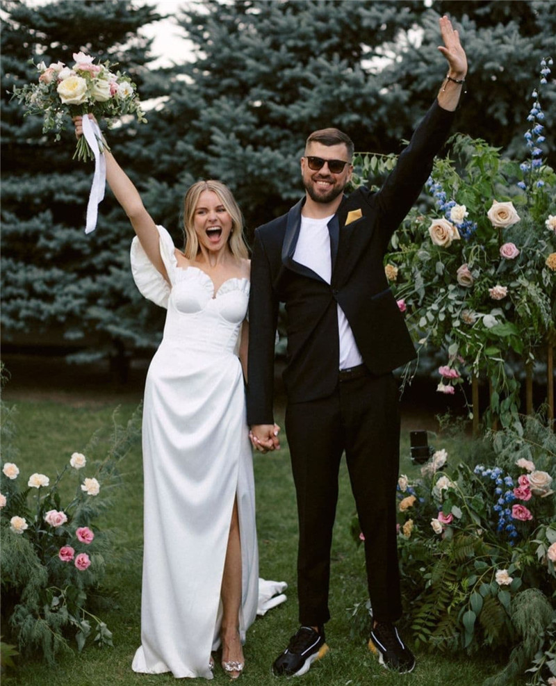 Simple Off the Shoulder Satin Mermaid Wedding Dresses Sweetheart Side Slit Outdoor Bride Gowns