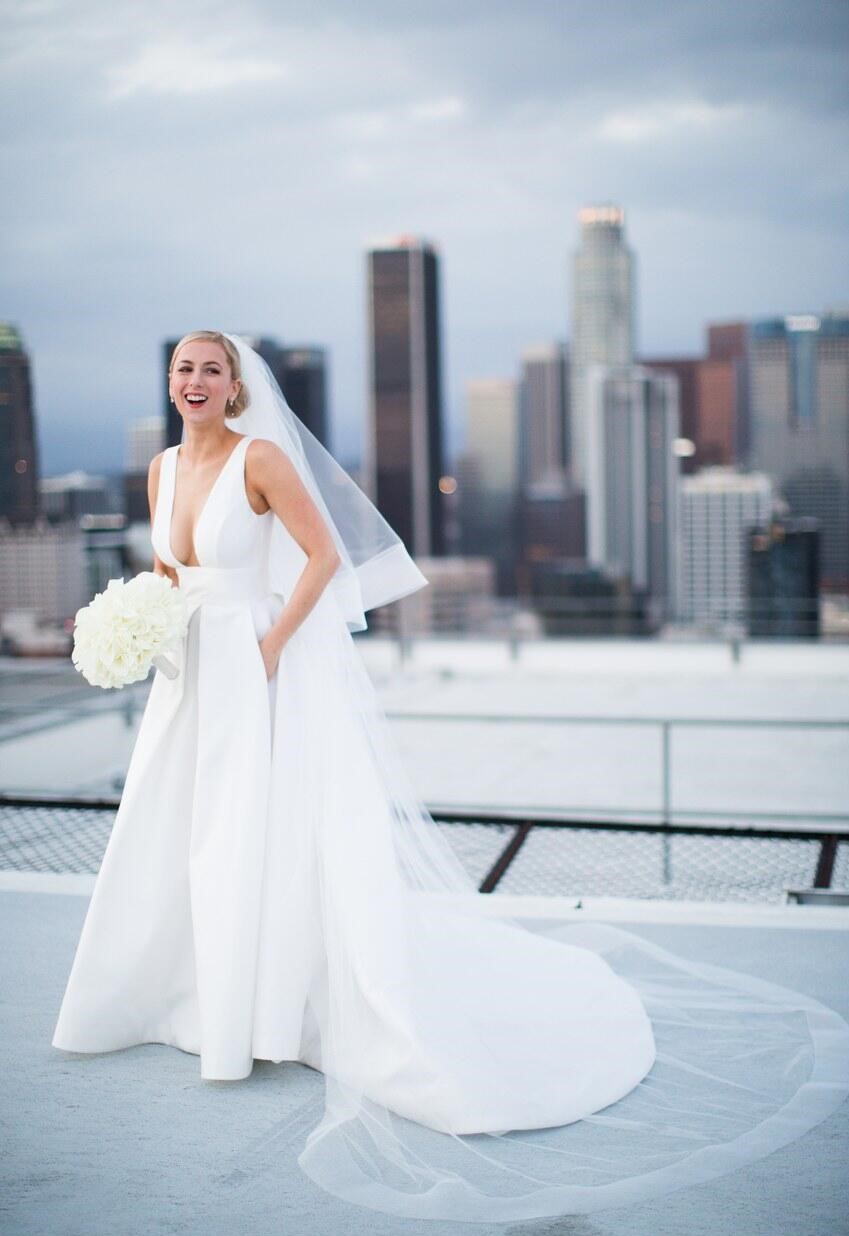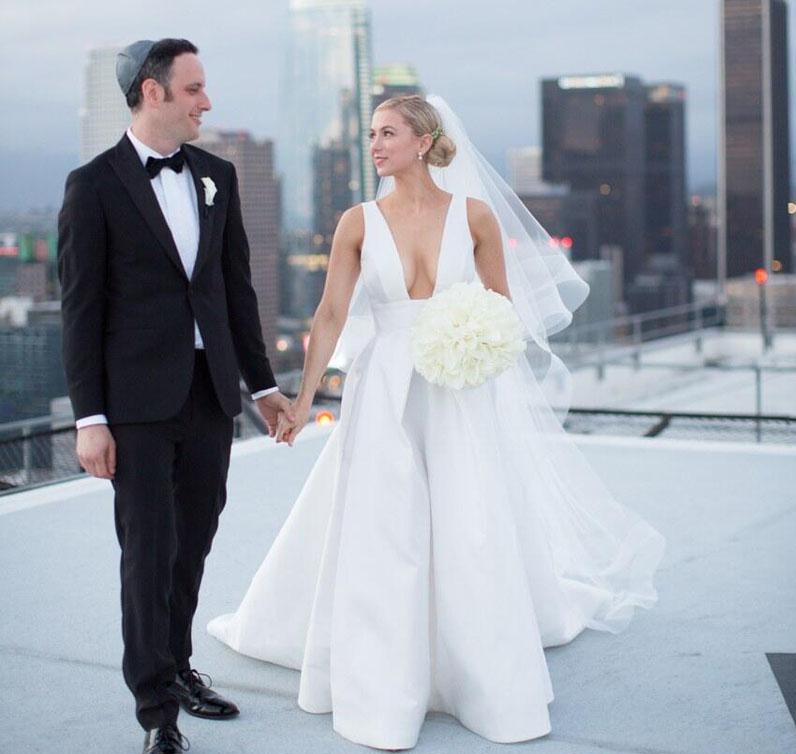 Sexy Deep V-Neck Sleeveless Wedding Dresses Simple A-Line Satin Zipper Back Floor Length Bridal's Gown Free Ship Wedding Dress