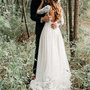 Boho V Neck Half Sleeves Long Backless Wedding Dresses with Appliques Lace