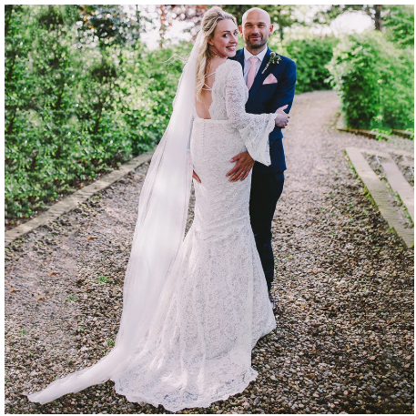 Rustic Long Flare Sleeve Lace Backless Wedding Dress Criss Cross Mermaid V Neck Buttons Bridal Gowns
