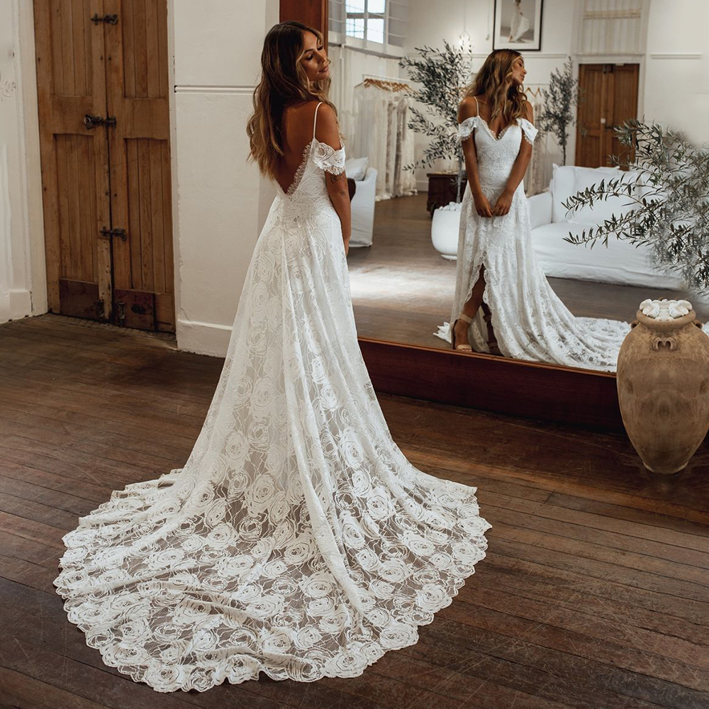 White Backless Mermaid Wedding Dress Lace Applique Sweetheart Off the Shoulder Bridal Dress