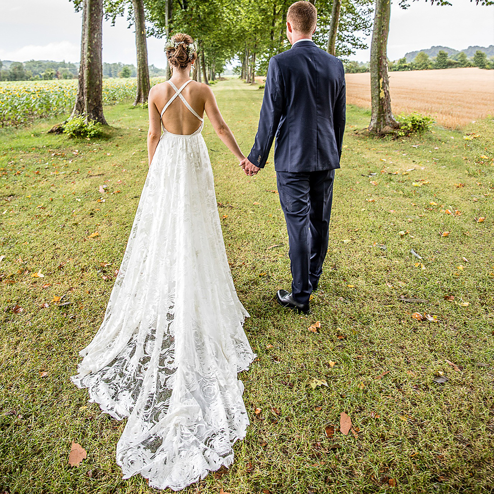 Bohemian Halter Beach Outdoor Rose Floral Lace Robe De Mariée Sleeveless Split Criss Cross Wedding Dress